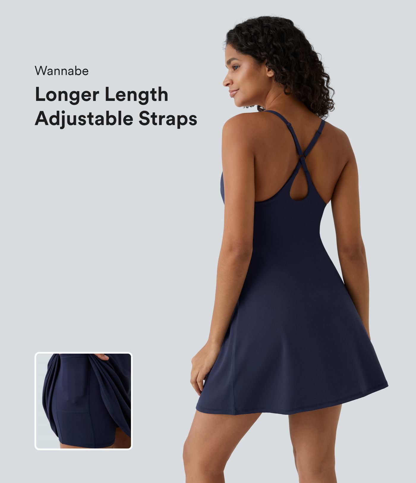 Softlyzero™ Plush Adjustable Strap Backless Crisscross 2-in-1 Pocket Flare Slip Active Dress