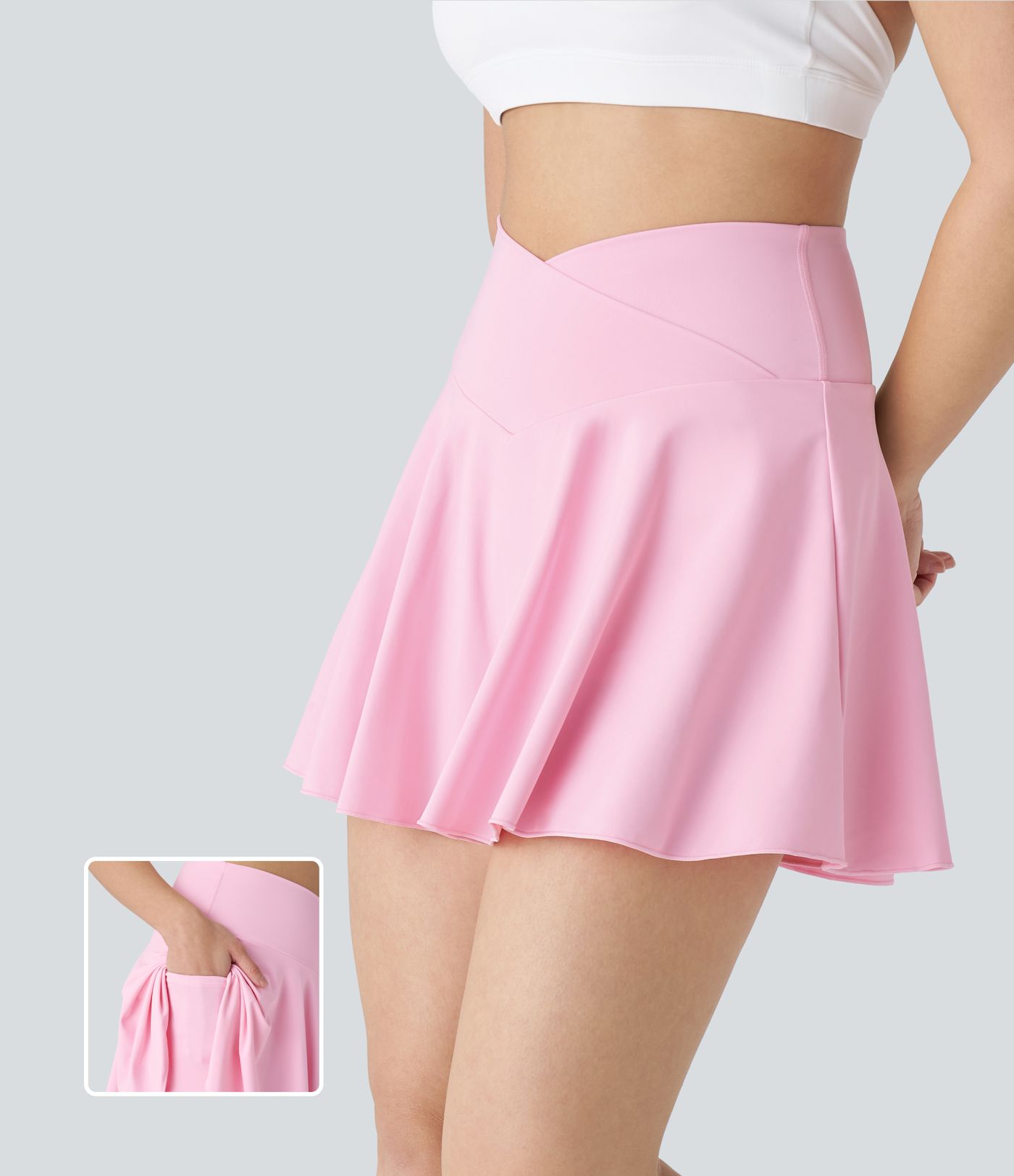 Softlyzero™ Airy Comfort High Waist Crossover 2-in-1 Side Pocket Flare Cool Touch Tennis Skirt - Long Length - UPF50+