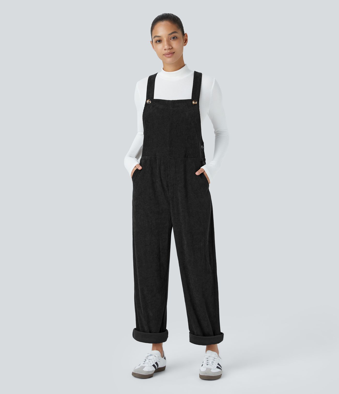 Adjustable straps Multiple pockets Straight leg corduroy casual overalls