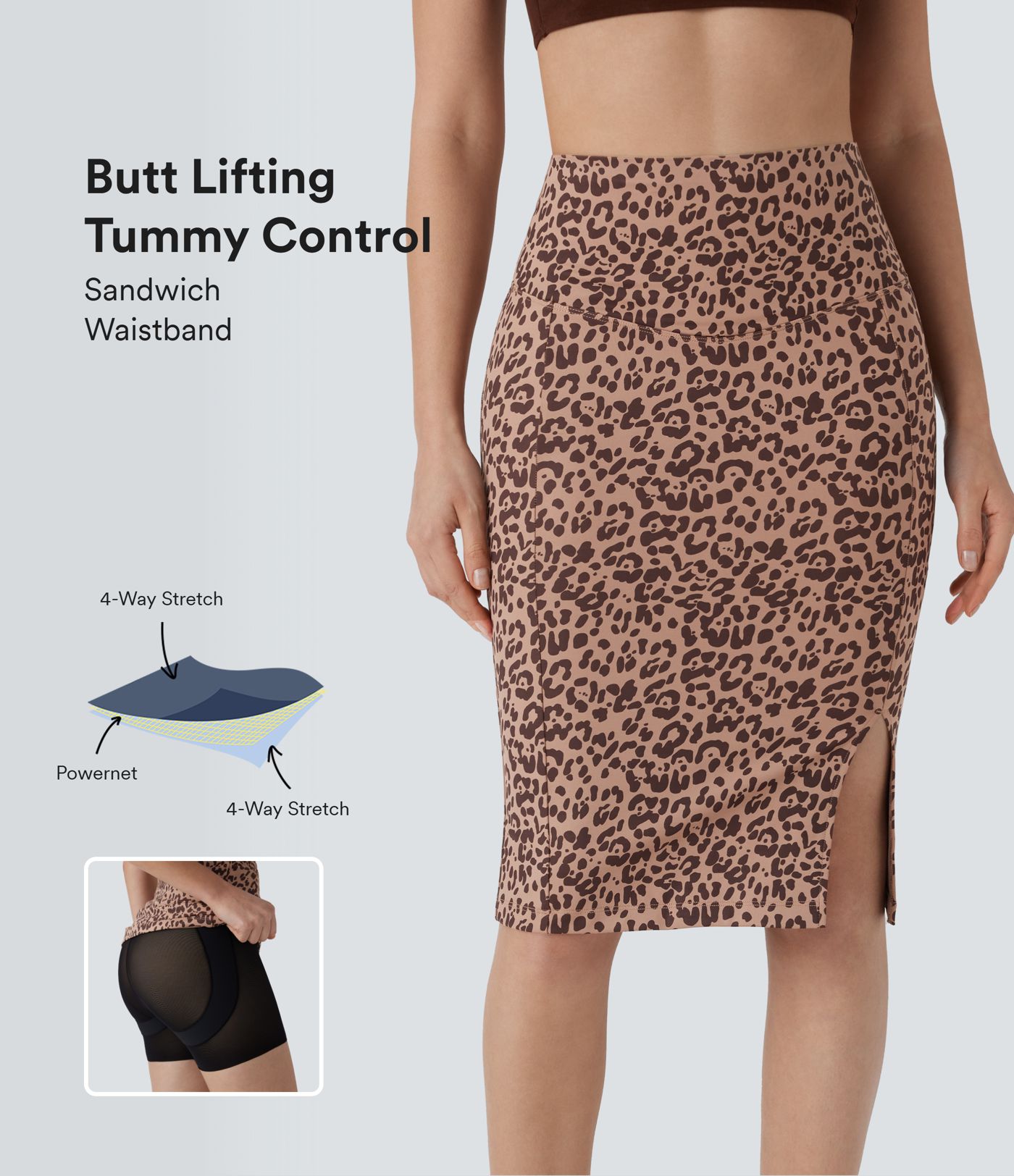 High Waisted Tummy Control Butt Lifting Midi Leopard Print Casual Shapewear Skirt