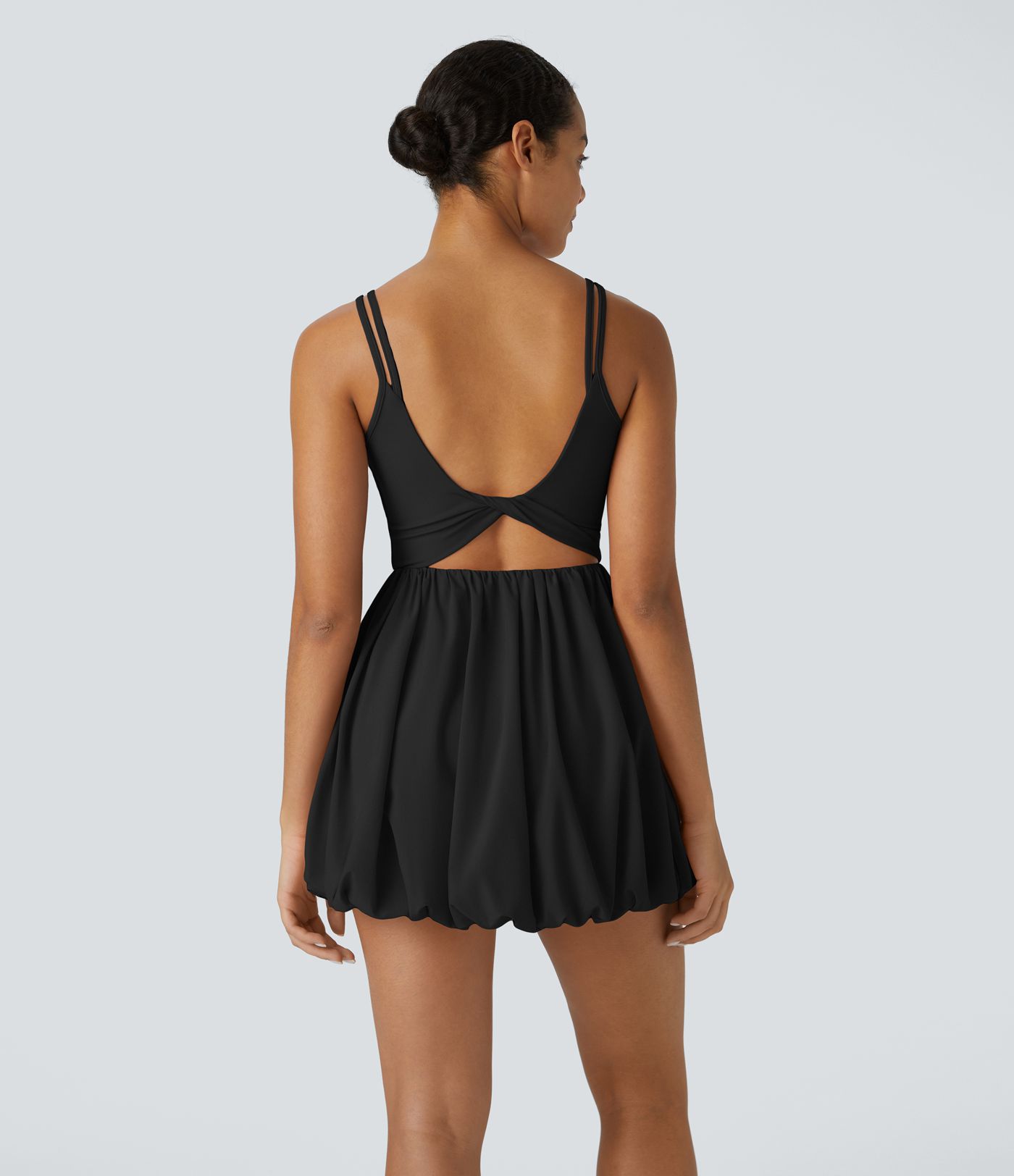 Breezeful™ U-Neck Double Strap Backless Twist Cutout Side Pocket Quick Dry Micro Mini Casual Bubble Dress