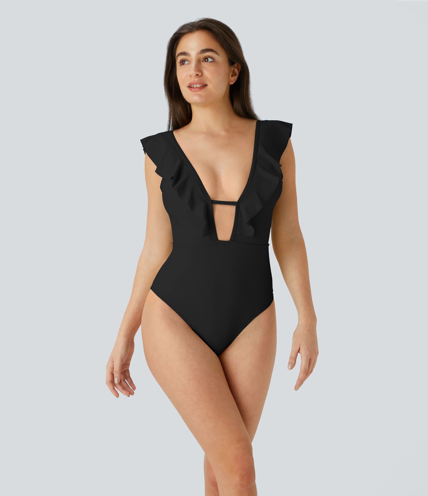 Deep V-neck frill backless one piece swimsuit