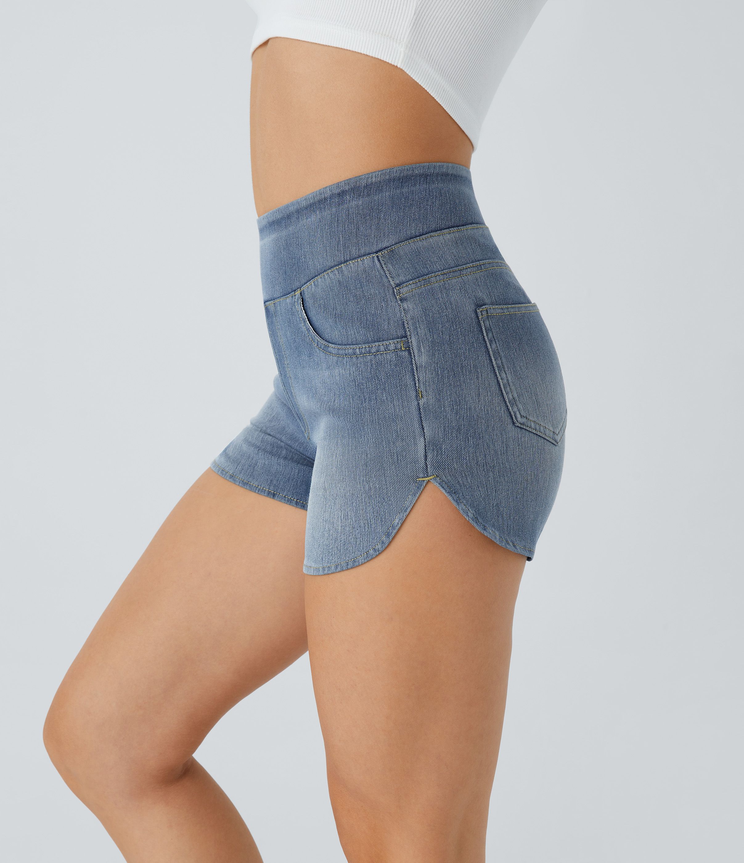 Halara Flex™ High Waist Multi-Pocket Curved Hem Skinny Stretch Knit Denim Casual Shorts 3-Inch