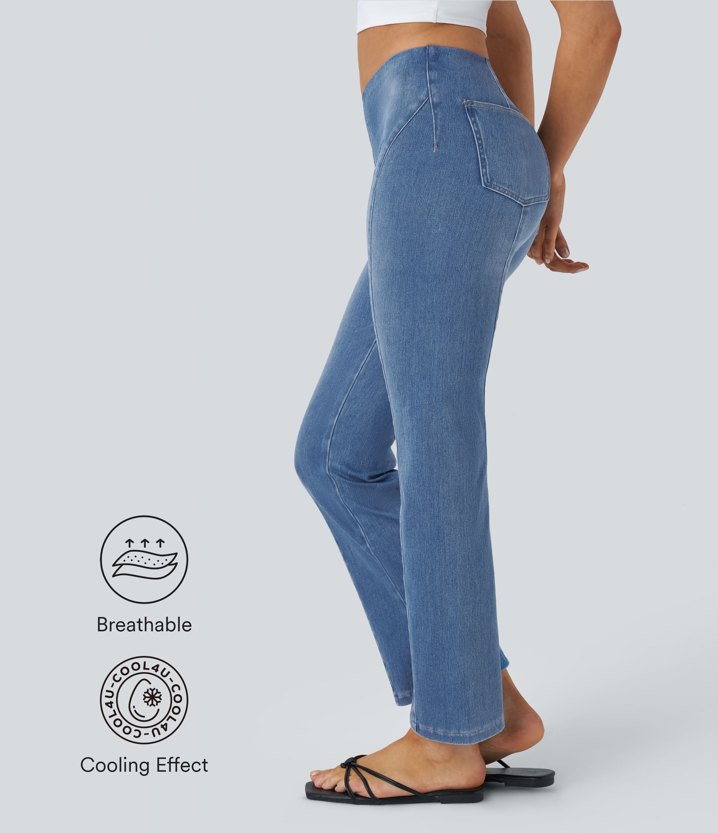 Halara Flex™ Mid-Rise Back Pocket Cool Touch Washed Stretch Knit Denim Casual Bootcut Leggings