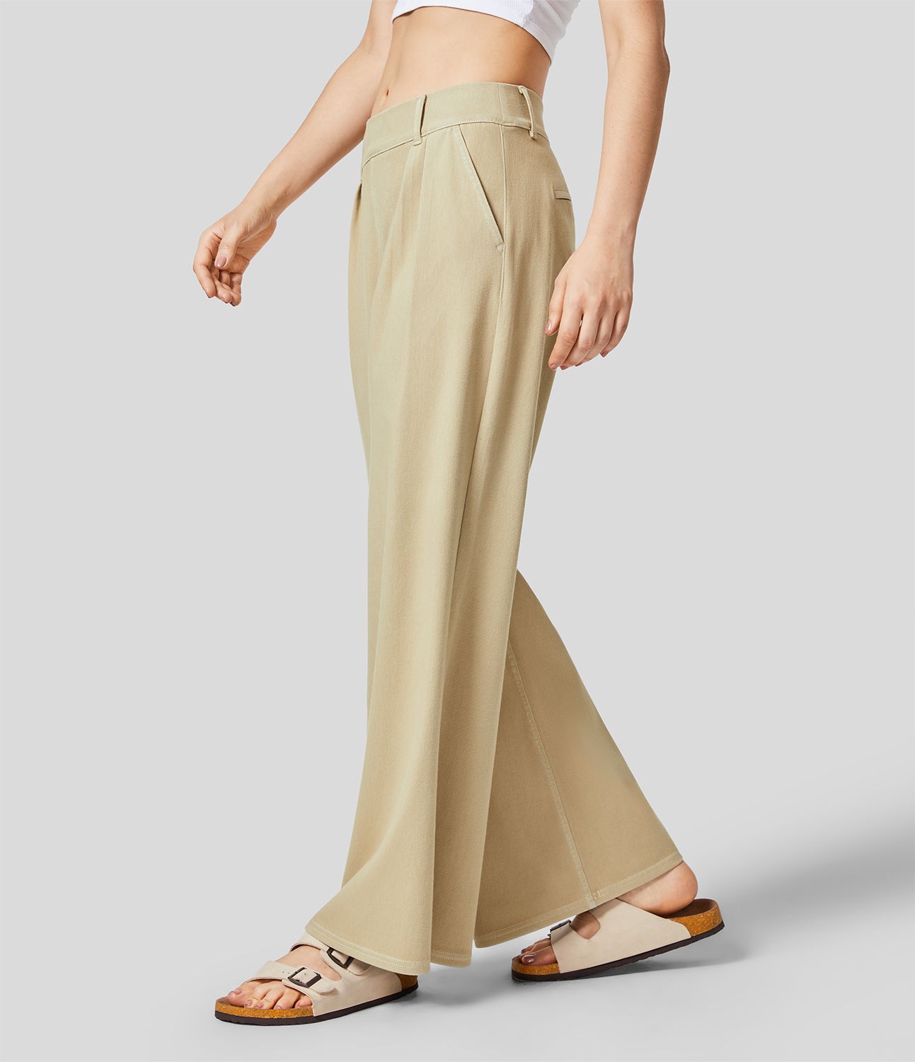 Halara Flex™ Casual jeans made of elastic knit denim with a mid-rise waist, wide leg, and side pockets
