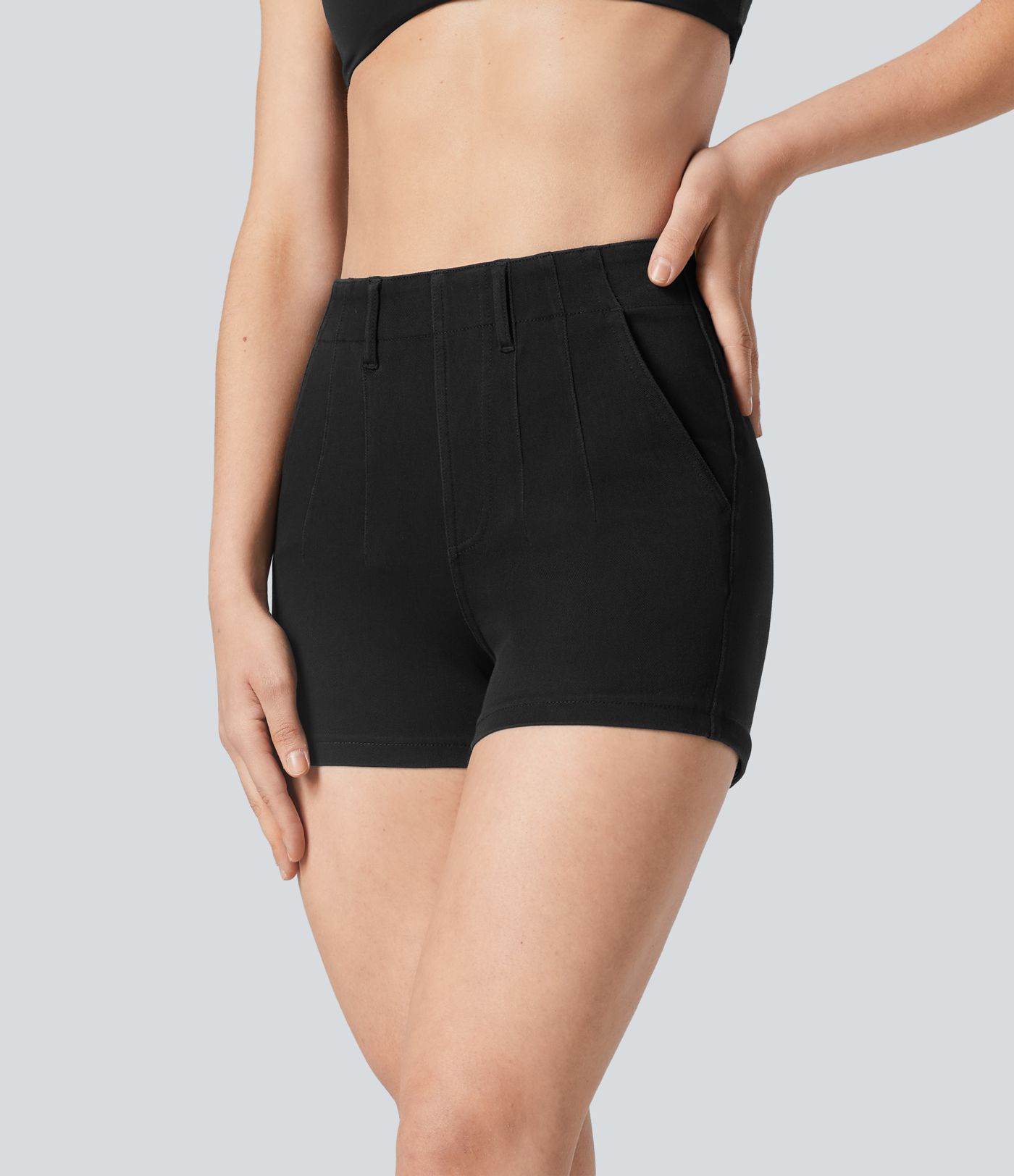 Halara Flex™ Mid-Rise Side Pocket Stretch Knit Denim Casual Shorts 3-Inch
