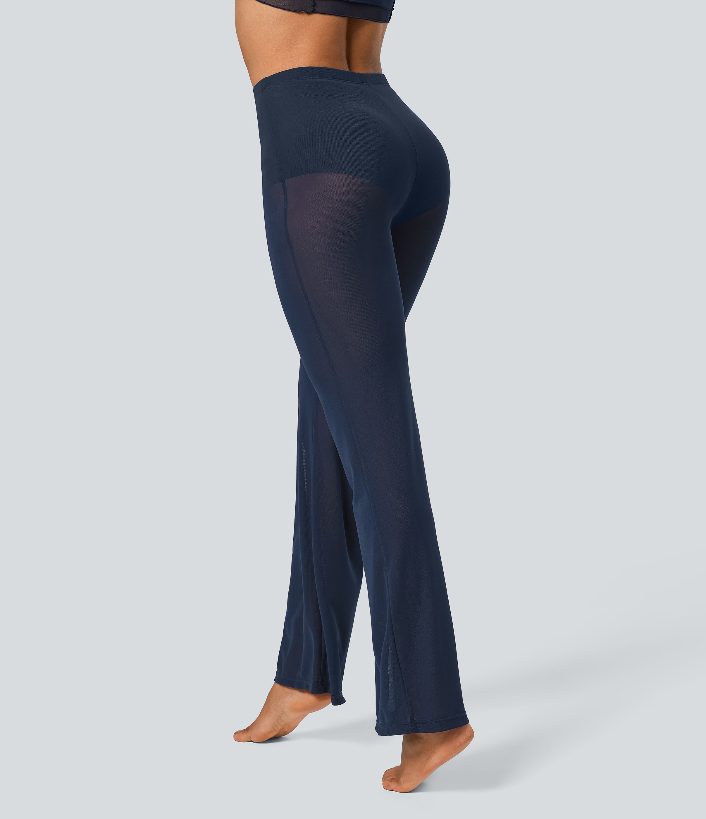 High Waist 2-in-1 Sheer Mesh Dance Flare Pants