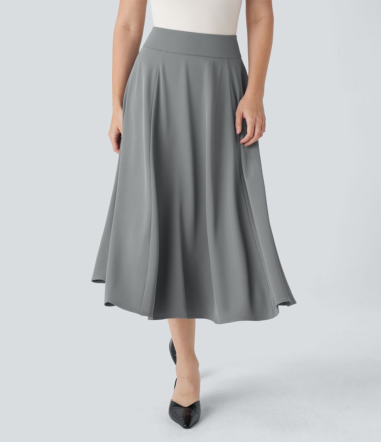 ハイウエスト バックインビジブルジッパー フレア ミディ ワークスカート