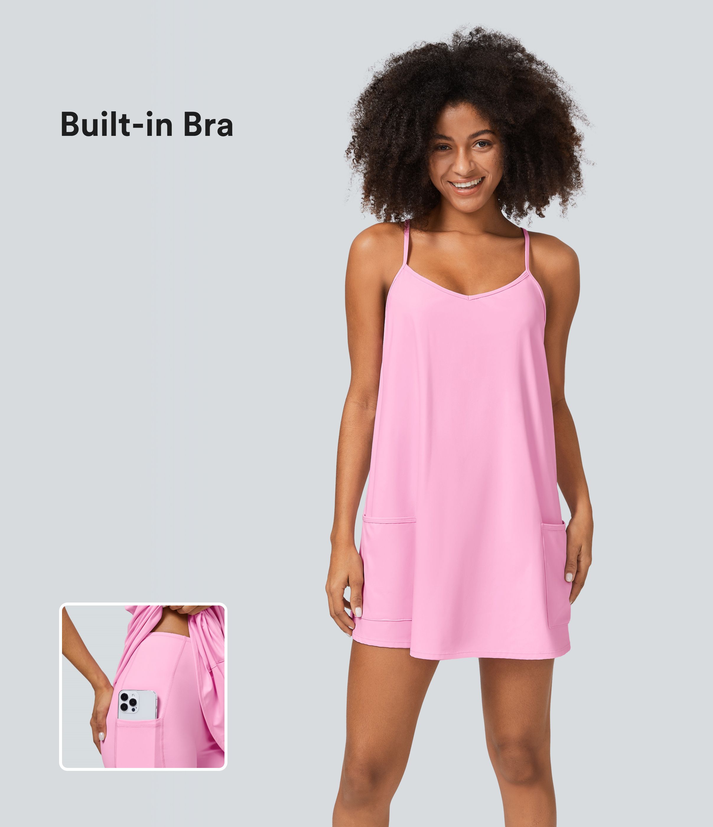 Racerback Built-in Bra Side Pockets 2-Piece Mini Slip Active Dress