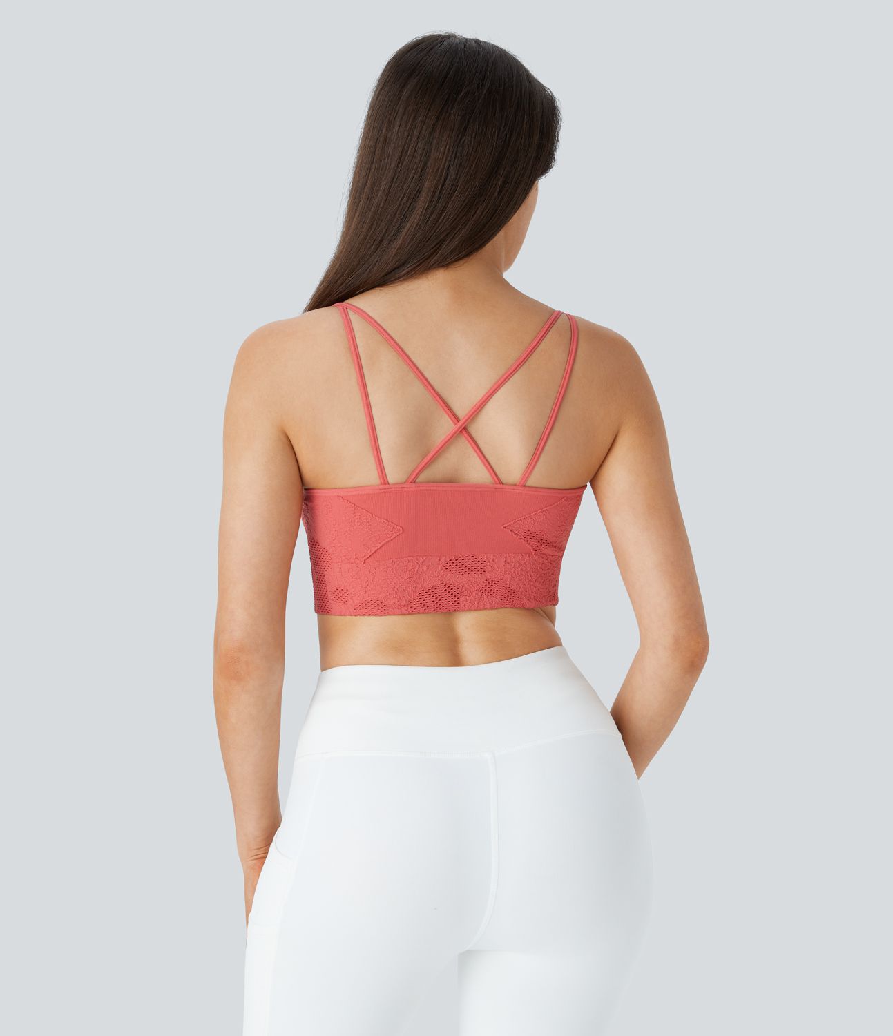 Seamless Flow Low Support Backless Criss Cross Jacquard Yoga Sports Bra