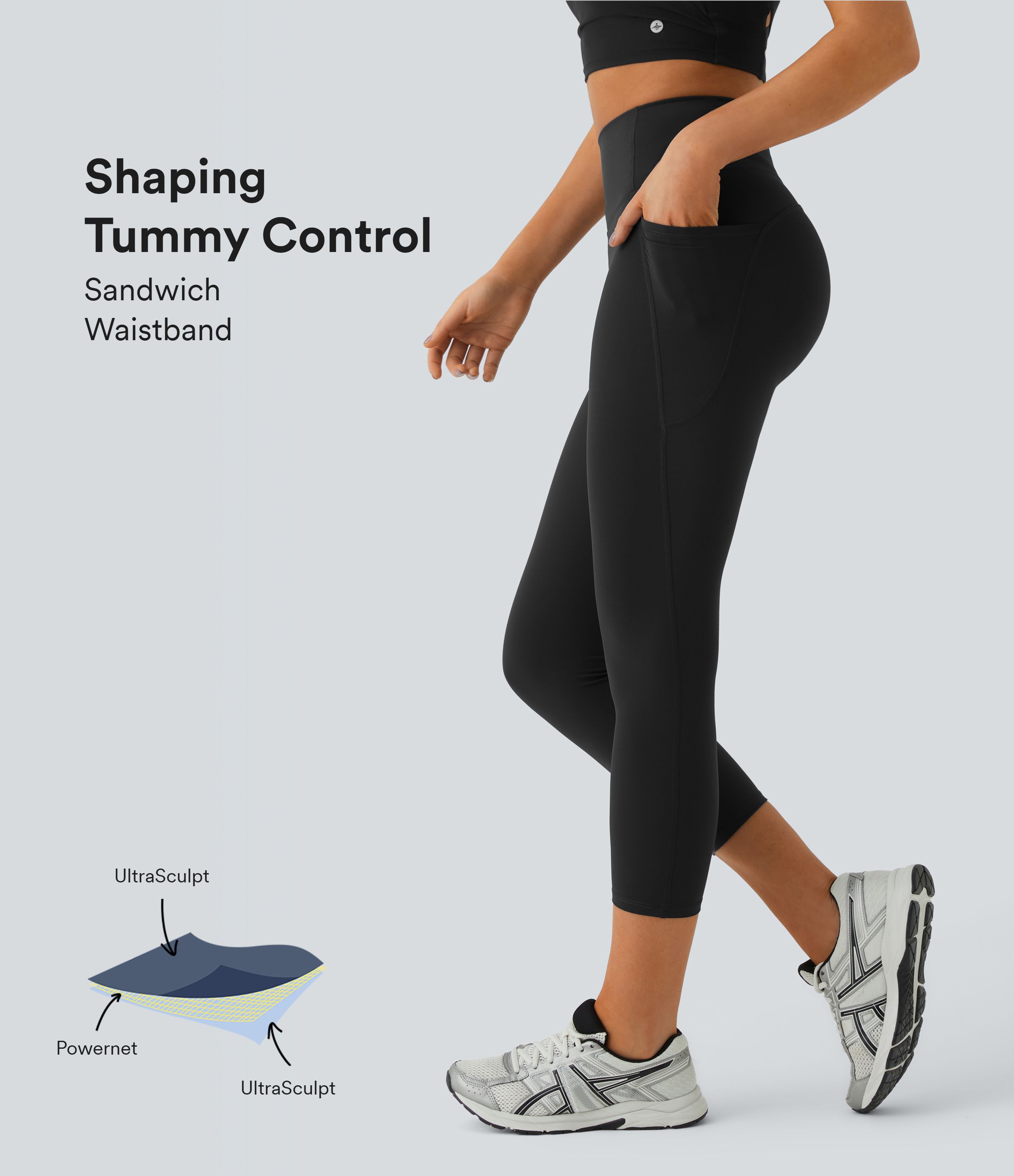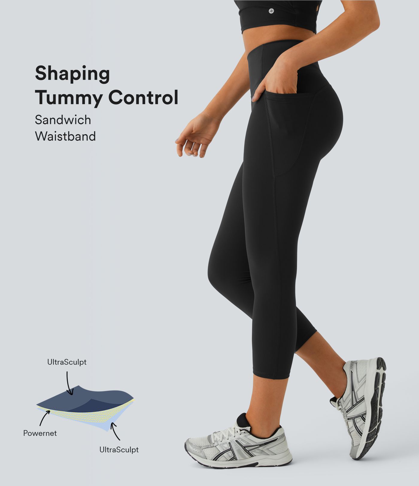 SoCinched High Waist Tummy Control Side Pocket Training Capri Leggings