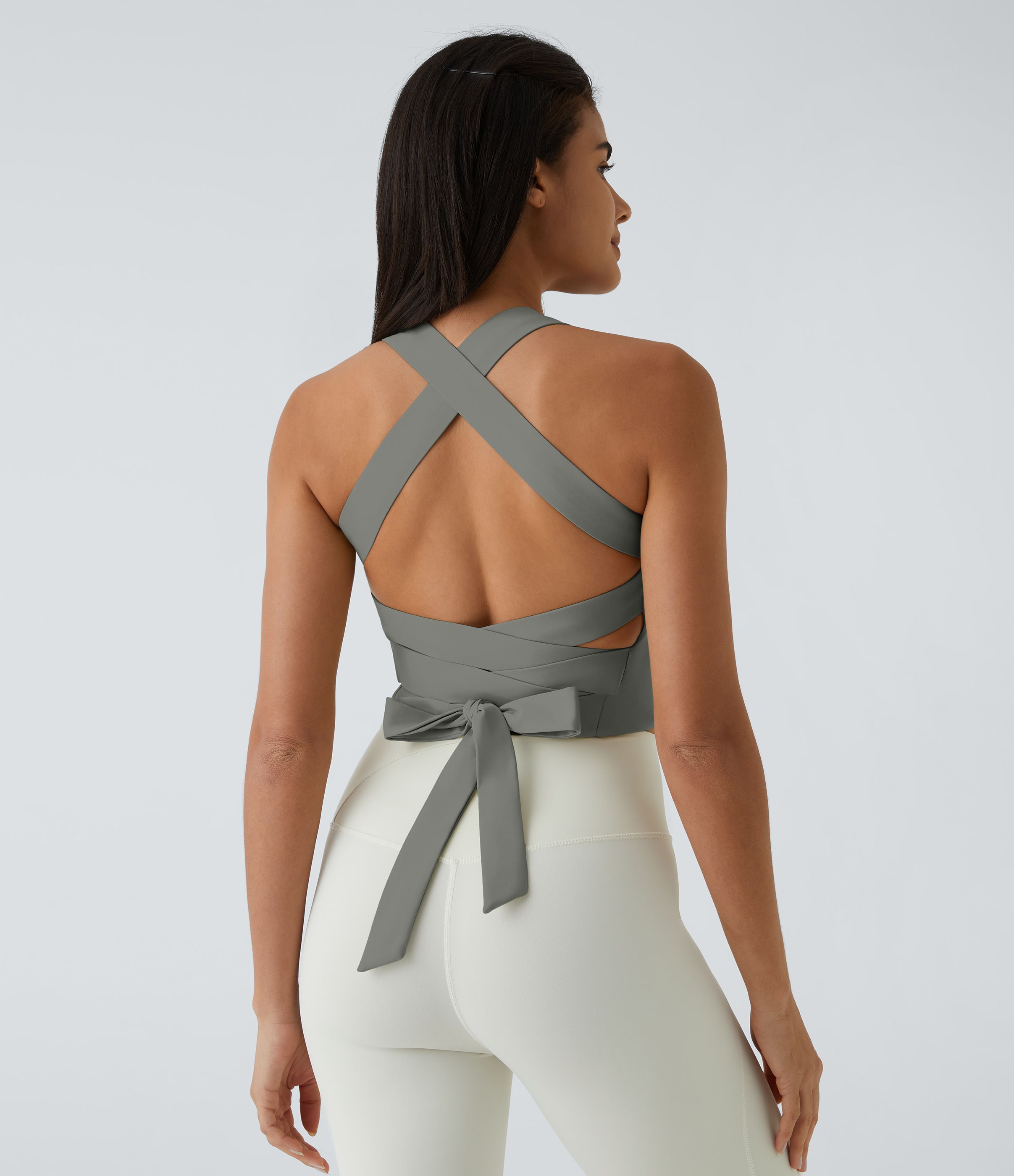 Softlyzero™ Airy Backless Padded Cross Tie-Back Cool Touch Workout Cropped Tank Top