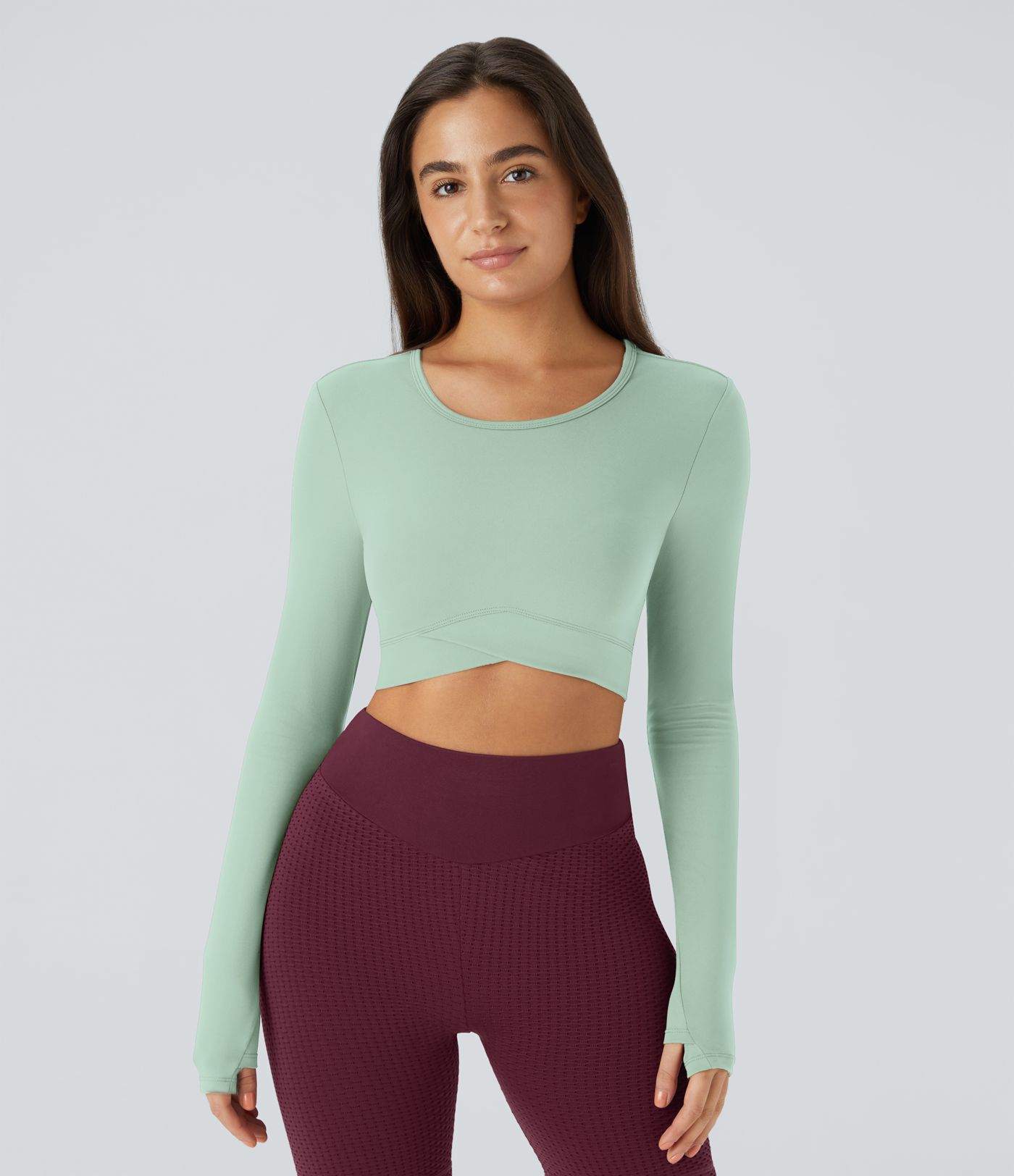 Softlyzero™ Plush サムホール クロスオーバー ヘム クロップド ヨガ スポーツ トップ