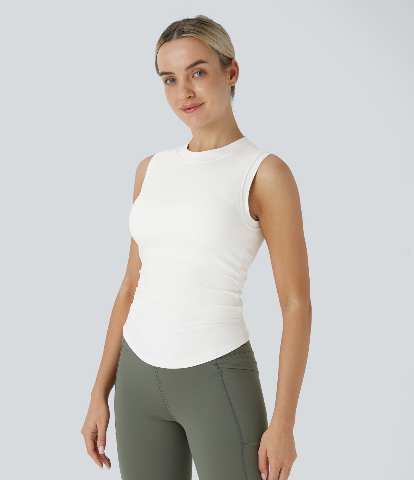 Softlyzero™ Stand Collar Ruche Curved Hem Skinny Yoga Tank Top - UPF50+