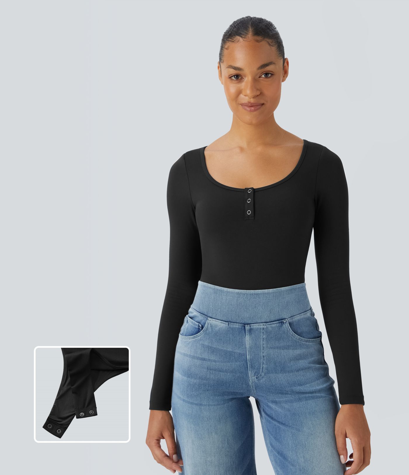 Softlyzero™ U-Neck Button Long Sleeve Casual Bodysuit UPF50+