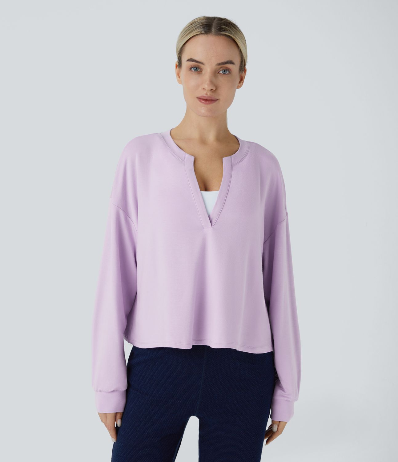 V-neck drop-shoulder long-sleeve casual sweatshirt